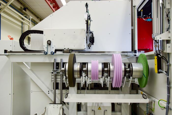 Les utilisateurs bénéficient également d'un usinage beaucoup plus efficace. Par exemple, les disques d'ébauche et de finition peuvent être préparés dans le changeur, ce qui permet d'obtenir à la fois un taux d'enlèvement de matière élevé et un usinage fin et précis des surfaces en une seule opération.